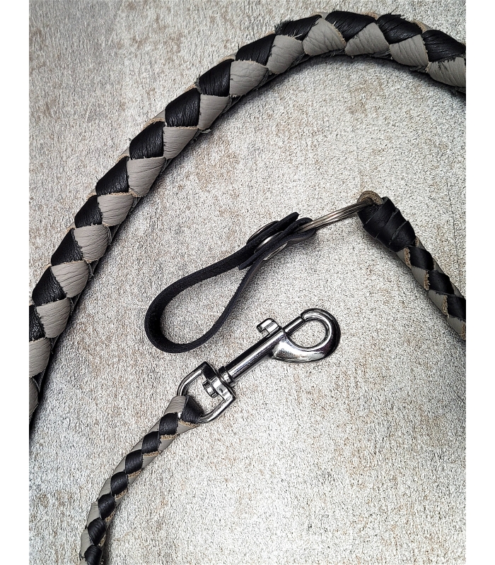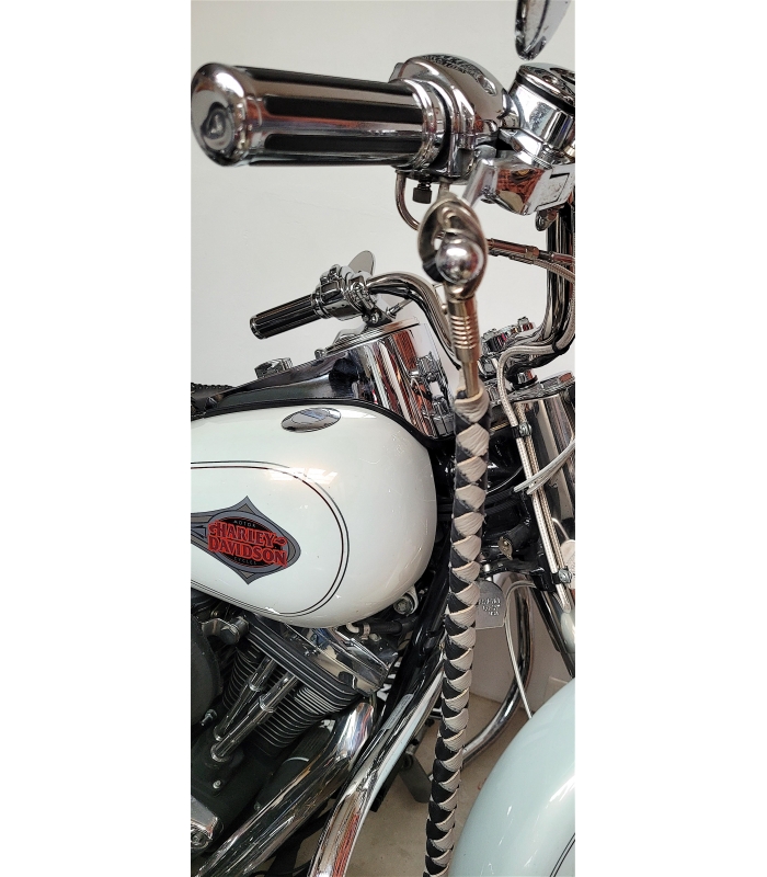 Ensemble fouet "whips" pour guidon de moto et lacet portefeuille noir et gris en cuir pour moto.