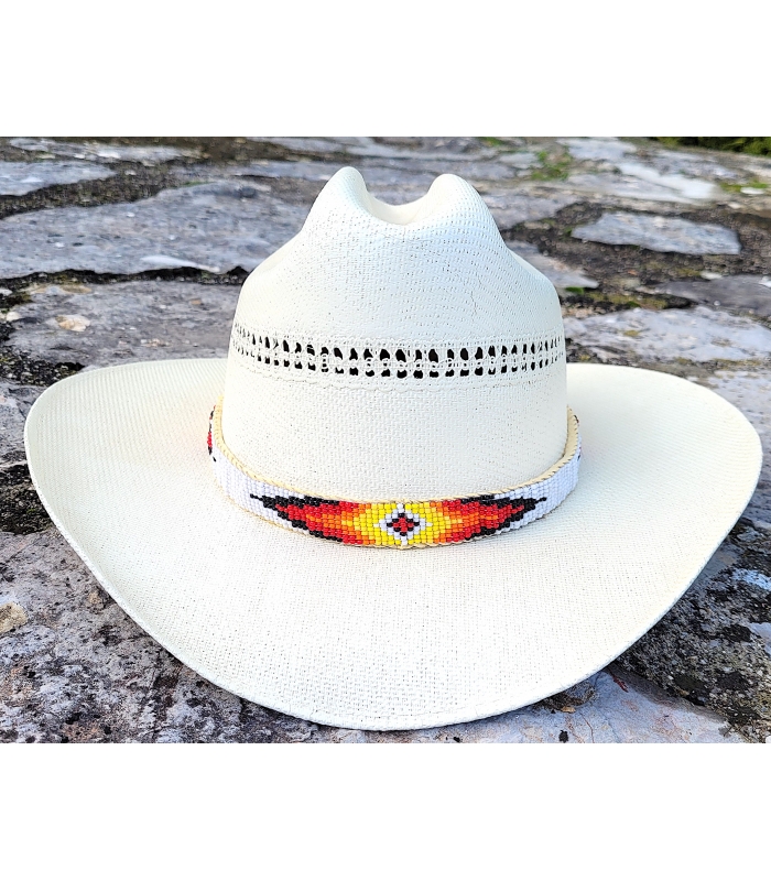 Tour de chapeau perlé sur cuir, accessoire qui vient agrémenter votre chapeau tel qu'il soit.