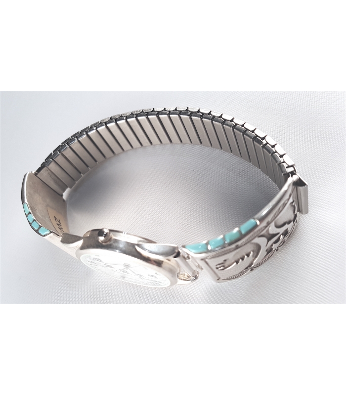montre en argent et turquoise
