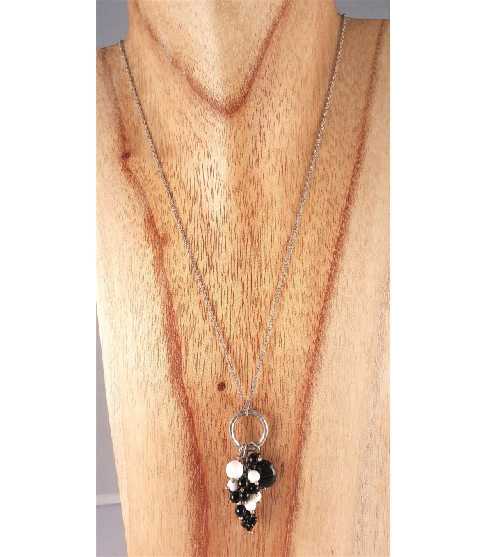 Collier avec sa chaine en argent et son pendentif en perles et argent