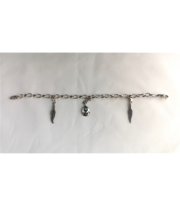 3 charms en argent deux plumes et une patte d'ours et sa turquoise