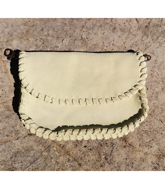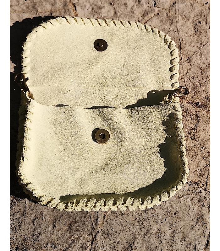 Pochette en cuir vert d'eau forme demie lune fait et cousu main
