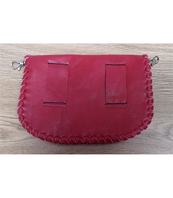 Pochette en cuir rouge forme demie lune fait et cousu main